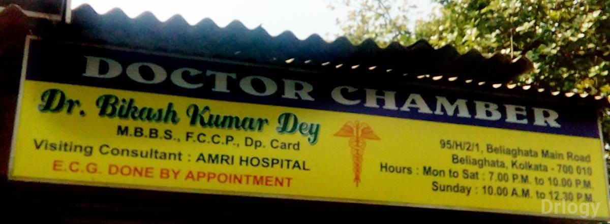 Dr Bikash Dey Clinic Address 95h, 21, Beliaghata Main Road, CIT More, Kulia, Beliaghata, Kolkata - 700010. Map Direction Dr Bikash Dey Clinic Timing Monday - Saturday 7:00 PM - 10:00 PM Sunday 10:00 AM - 12:00 PM